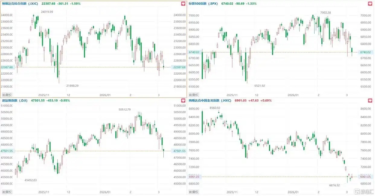 好意思股三大指数集体收跌,纳指、标普500指数跌逾1.3%,英特尔跌超5%