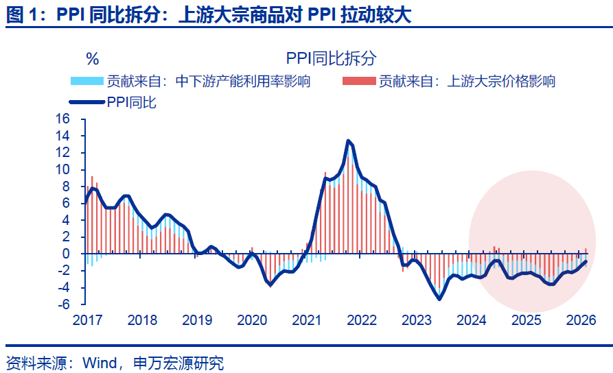 2月PPI同比“超预期”,源于有色、原油等国际价格上涨对国内通胀的输入性传导。2月PPI环比0.4%,同比上行0.5个百分点至-0.9%。从影响因素看,2月铜价高频指标有所回落(环比-0.3%),但铜冶炼价格延续上行(环比3.7%),或受益于AI等相关行业需求旺盛;同时银冶炼、金冶炼、铝冶炼格涨幅也较为明显,共同带动有色采选(环比7.1%)、有色压延(环比4.6%)PPI上行,测算拉动PPI环比0.4%、仍为最大贡献项。同时,国际油价涨幅也较明显,对应石油开采、精炼石油产品制造价格分别上涨5.1%、0.7%,测算油价拉动PPI环比0.2%。国内方面,寰宇证券,寰宇证券配资,香港寰宇证券公司煤炭、钢铁涨价涨幅较小,对PPI环比贡献0%。